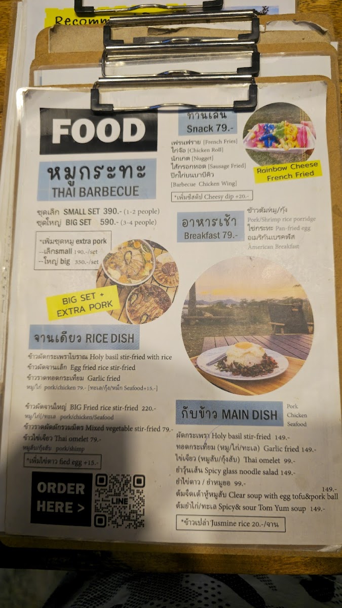 But it’s not just about drinks here; เตมเตมคาเฟ&แคมปปง also serves up a delectable menu featuring moo krata—a Thai BBQ option that has drawn high praise for its delicious taste and quality marination, particularly noted by diners like Sigurd Karlsen, who highlighted its “vary tasty Korean marinade” and the “lovely surroundings.”
